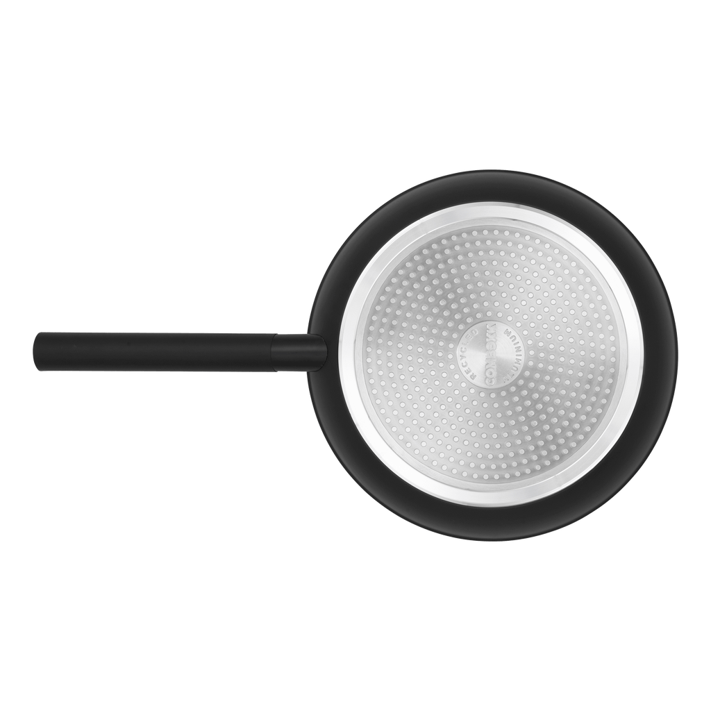 Elevate your cooking with the COMBEKK Ceramic Aluminium Fry Pan 28cm Black. Crafted from lightweight, recycled aluminum, this fry pan combines eco-conscious design with high performance. The PFAS-free and BPA-free ILAG ceramic coating ensures effortless cooking and easy cleanup, while its sleek black finish adds a modern touch to your kitchen. Compatible with all heat sources, including induction, this versatile pan is perfect for frying, sautéing, and more. The handle, made from 100% recycled bakelite, provides a comfortable and safe grip, making sustainable cooking stylish and efficient.