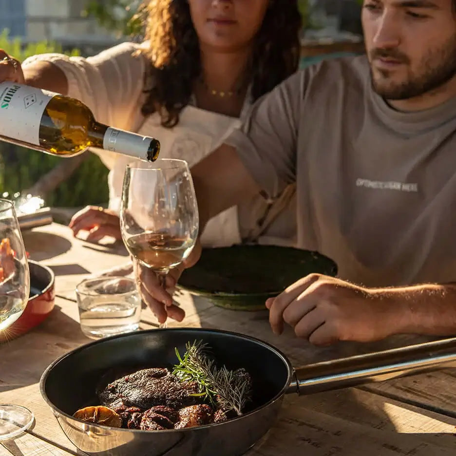 Explore the pinnacle of longevity with COMBEKK's newest stainless steel fry pan, featuring a robust ILAG ceramic coating. Crafted from high-grade recycled stainless steel, this fry pan combines durability, eco-friendly materials, and exceptional performance, making it a must-have for every kitchen. Designed for versatile use, it ensures consistent cooking results while providing effortless cleaning and stylish presentation.