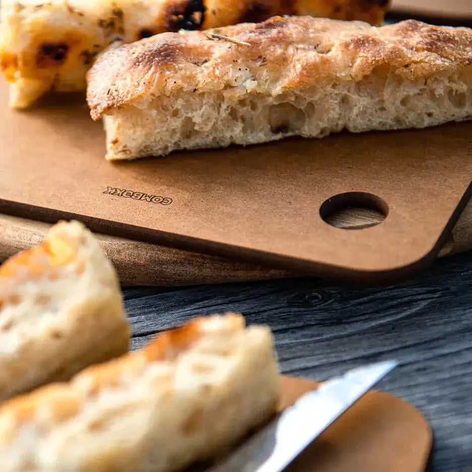 Explore the environmentally conscious adaptability of COMBEKK's Recycled Paper Cutting Boards, expertly crafted from 100% recycled paper and transformed into durable 'richlite' material. Designed for strength, stability, and a knife-friendly surface, these cutting boards are easy to clean and dishwasher-safe. The practical hole in the upper left corner allows for effortless lifting and stylish presentation of small treats like cake, pie, or snacks. Proudly made in Holland, each board combines sustainability, durability, and a compelling story behind its creation, elevating your culinary endeavors with an eco-conscious touch.