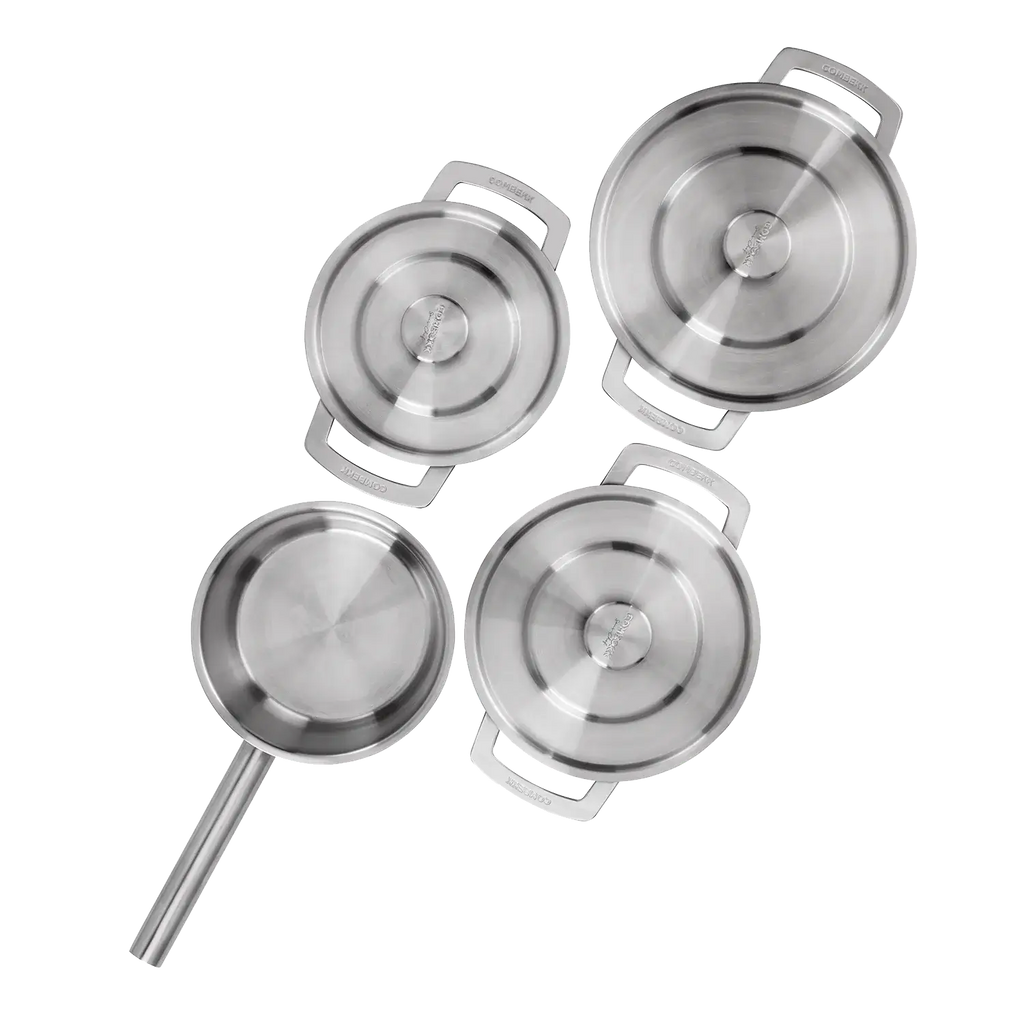 Elevate your kitchen with the COMBEKK 4-Piece Stainless Steel Cooking Set, crafted from 100% recycled stainless steel for sustainable, durable, and high-performance cooking. Perfect for daily use, this versatile set is compatible with all heat sources, including induction, and can be safely used in the oven.