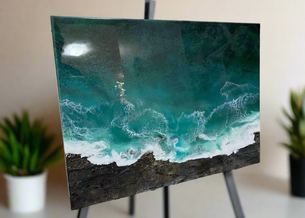 Capture the natural beauty of the coastline with “Combers Beach,” an original painting on a cradled birch panel set under archival grade resin. Handmade with precision, this 12"x18" artwork features rich coastal tones and a high-gloss finish, making it ideal for home décor, office spaces, or as a unique collectible piece.