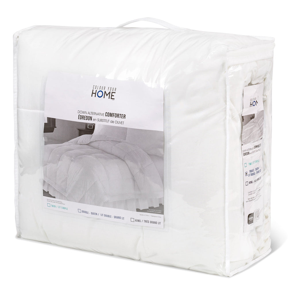Enjoy restful sleep with this Down Alternative Comforter for Double/Queen beds, measuring 86"x86". Crafted from premium soft microfiber, this lightweight and breathable comforter provides cozy warmth while remaining hypoallergenic, making it perfect for sensitive sleepers. Its crisp white color and classic design seamlessly complement any bedroom décor. Machine washable for easy care, it ensures convenience along with long-lasting comfort.