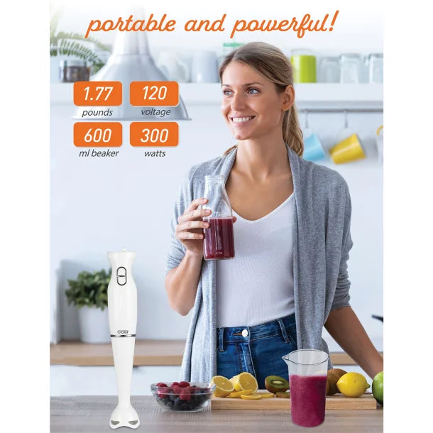 The Commercial Chef 2-Speed Immersion Handheld Blender is a versatile and powerful kitchen tool designed to make blending, pureeing, and mixing quick and easy. Featuring two speed settings, this handheld blender allows you to easily adjust the power based on your needs, whether you’re preparing smoothies, soups, sauces, or other recipes. The included 20-ounce beaker provides a convenient vessel for blending, while the lightweight design ensures effortless handling. Its compact size makes it perfect for small kitchens, yet its robust motor ensures exceptional performance every time.
