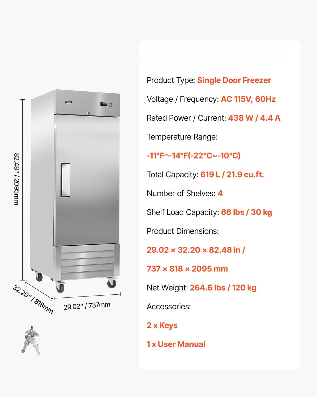 This commercial reach-in freezer provides reliable, high-capacity cold storage for restaurants, commercial kitchens, and demanding home use. Built with durable stainless steel construction and a tall upright design, it delivers consistent freezing performance, frost-free operation, and precise digital temperature control. Ideal for bulk frozen food storage while maximizing space efficiency.