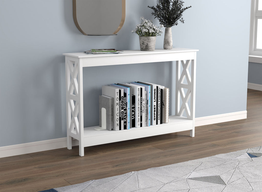 Add clean elegance to your home with this White Console Sofa Table, designed with a minimalist aesthetic and everyday practicality. The smooth white top provides a timeless, versatile backdrop for lamps, décor pieces, or personal accents, while the durable finish ensures long-lasting beauty and easy maintenance. A spacious lower shelf offers additional room for books, baskets, or decorative displays, enhancing both function and style. Perfect for hallways, entryways, or behind the sofa, this modern white console table blends seamlessly into contemporary, coastal, or classic interiors.