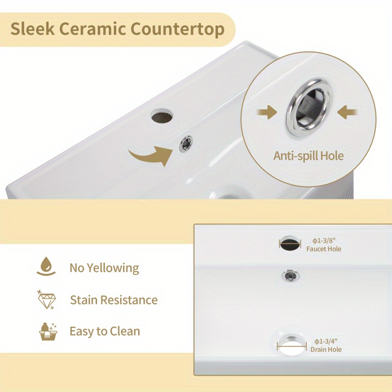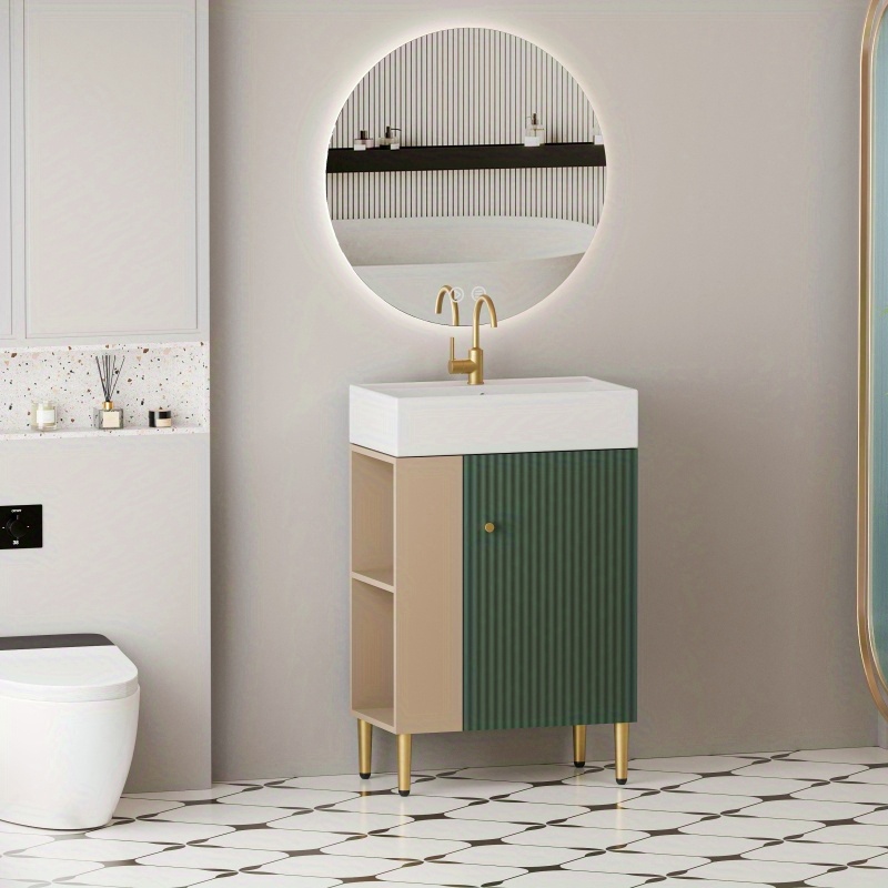 This 21.6" Contemporary Green Bathroom Vanity not only adds style to your bathroom, but also provides practical storage space with an Open Shelf Storage Cabinet on the left side. Made from high-quality ceramic and sourced from Guangdong, China, this vanity features a contemporary design that is sure to enhance your bathroom decor. Assembly is required, but the final result will be a stylish and functional addition to your bathroom. Don't miss out on this must-have bathroom accessory!