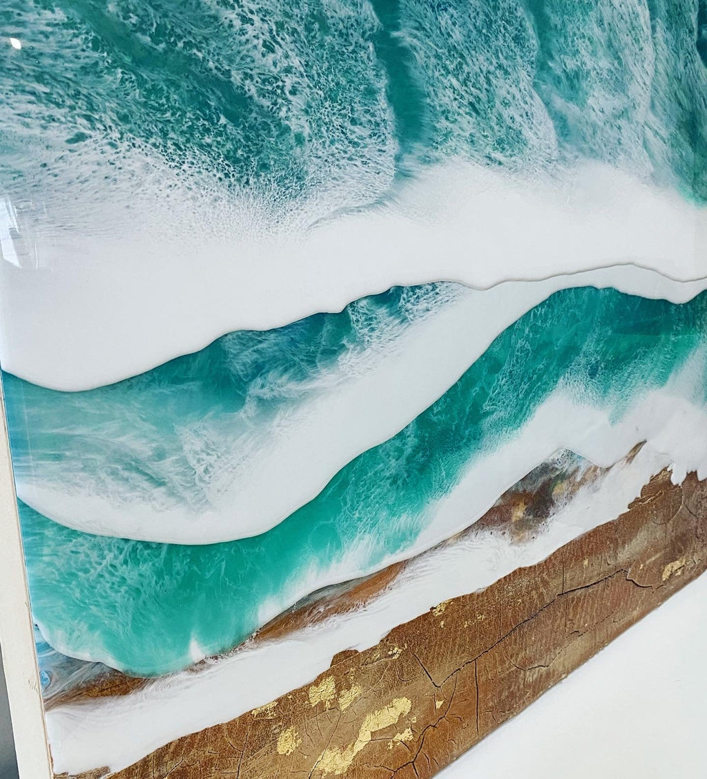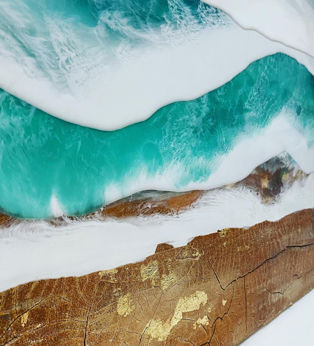 Bring the beauty of the ocean into your space with “Cordova Bay,” an original resin painting layered on a birch panel. Handmade with care, this 40"x24" artwork features vibrant textures and depth, capturing the dynamic movement of ocean waves. Perfect for home décor, office spaces, or as a unique gift for art collectors.