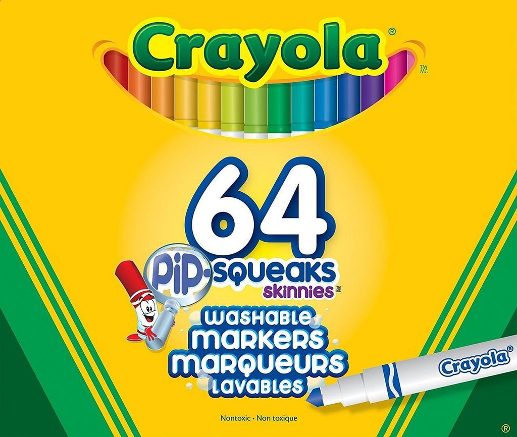 Crayola Pip-Squeak Skinnies Washable Markers offer versatility and ease of use, making them a fantastic choice for kids who love to draw and write with precision. The 64-count pack provides a broad palette of colors to enhance any creative endeavor.