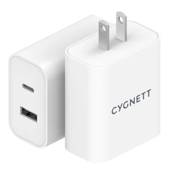 The Cygnett® PowerPlus 38-Watt Dual Port Wall Charger is the perfect solution for fast and efficient charging. With two USB ports delivering a total of 38 watts of power, it allows you to charge two devices simultaneously at high speeds. Compatible with iPhone®, Android™, tablets, and other USB-powered devices, this charger ensures your electronics stay powered up. Its sleek and compact design makes it convenient for home, office, or travel, while its smart charging technology optimizes the power output to ensure each device is charged safely and quickly.