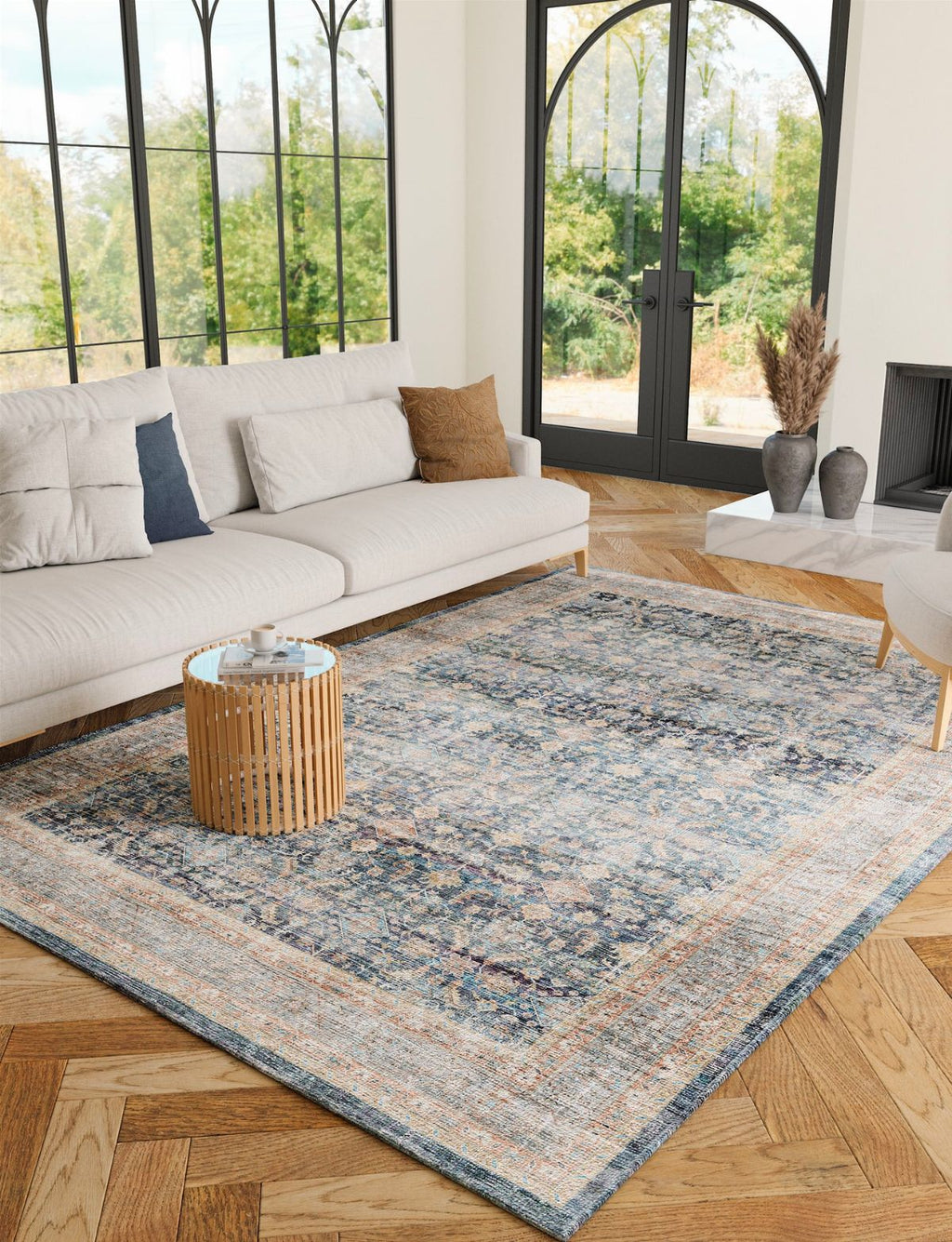 Elevate your living space with the Davina Navy Lagoon Rug. Featuring a Persian-inspired design with rich navy and lagoon hues, this rug becomes a striking centerpiece in any room. Available in machine washable or premium linen options, it combines style with practicality. Ideal for adding warmth, color, and texture, the Davina rug pairs effortlessly with any décor and rug pad for enhanced comfort and durability.