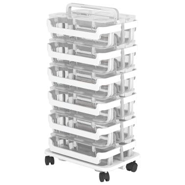 Mobile Storage: Equipped with wheels for easy movement of stacked bins.