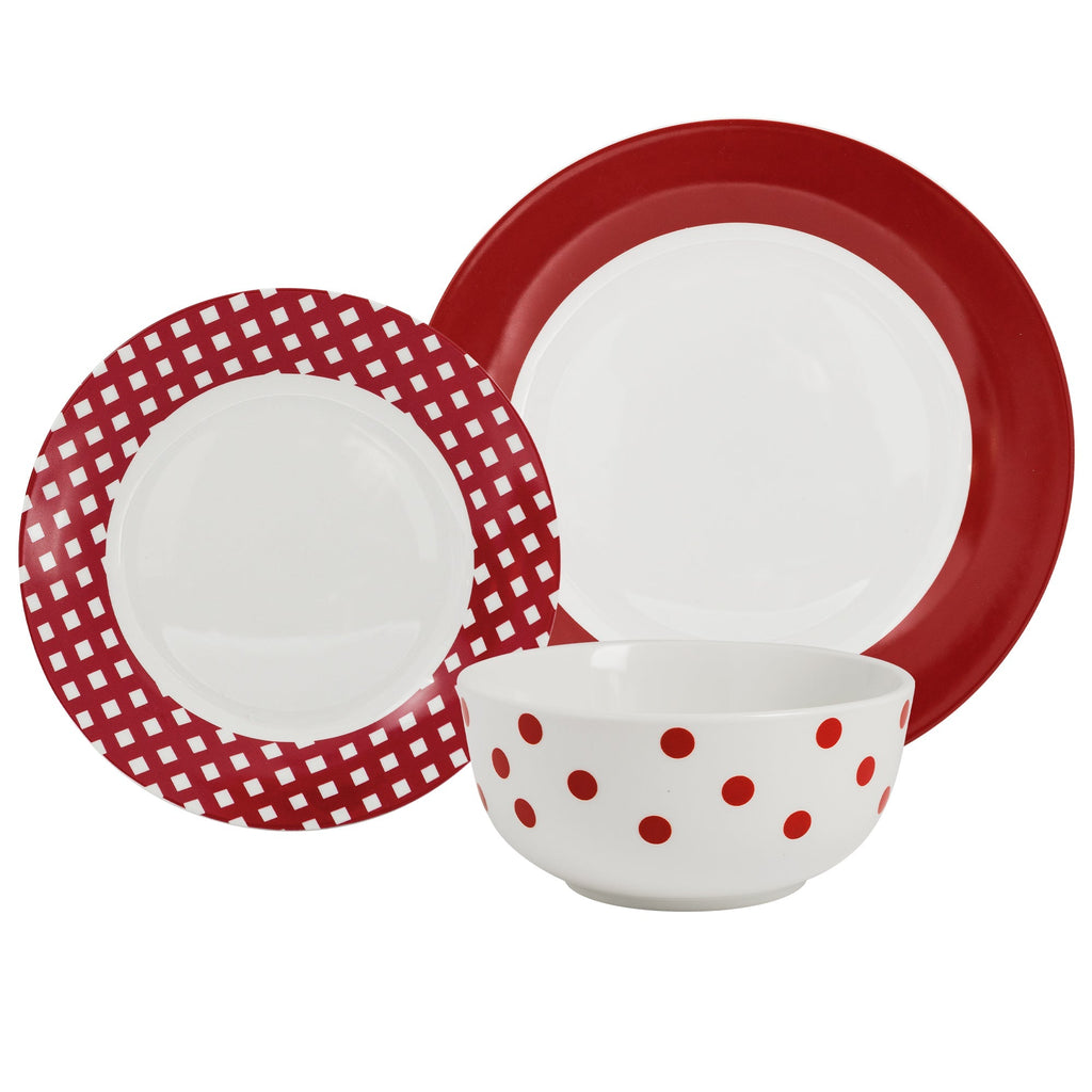 Elevate your dining experience with this 12-piece Rimmed Porcelain Dinnerware Set in a striking Rouge finish. Perfect for everyday meals and special occasions, the set features a timeless rimmed silhouette and a glossy surface that enhances presentation. Made from durable, chip-resistant porcelain and safe for microwave and dishwasher use, it combines practical convenience with bold, modern style.