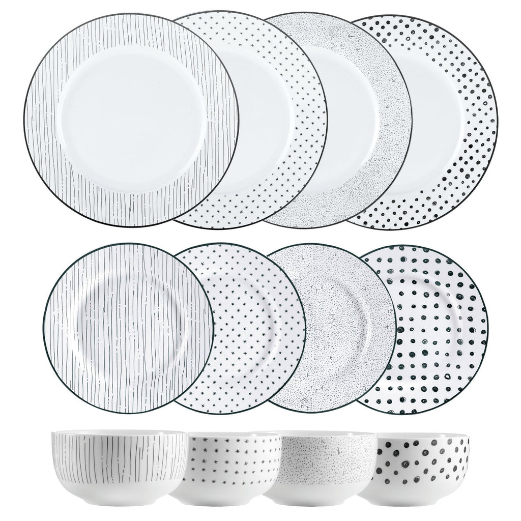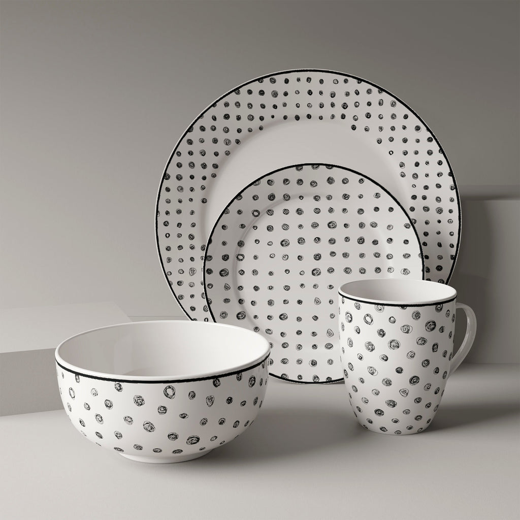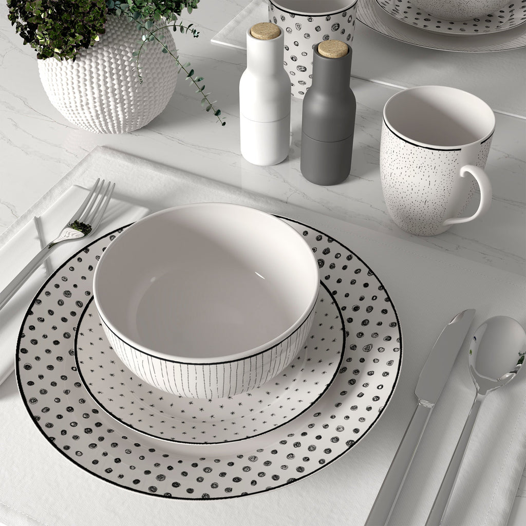 Experience the perfect balance of style and functionality with this 12-piece Black & White Dinnerware Set, designed to serve four. Featuring a striking contrast of bold black and crisp white, each piece brings a modern and dramatic flair to your table. Ideal for everyday meals or elegant dinner parties, this set is durable, easy to care for, and conveniently microwave and dishwasher safe — a practical yet stylish staple for every home.