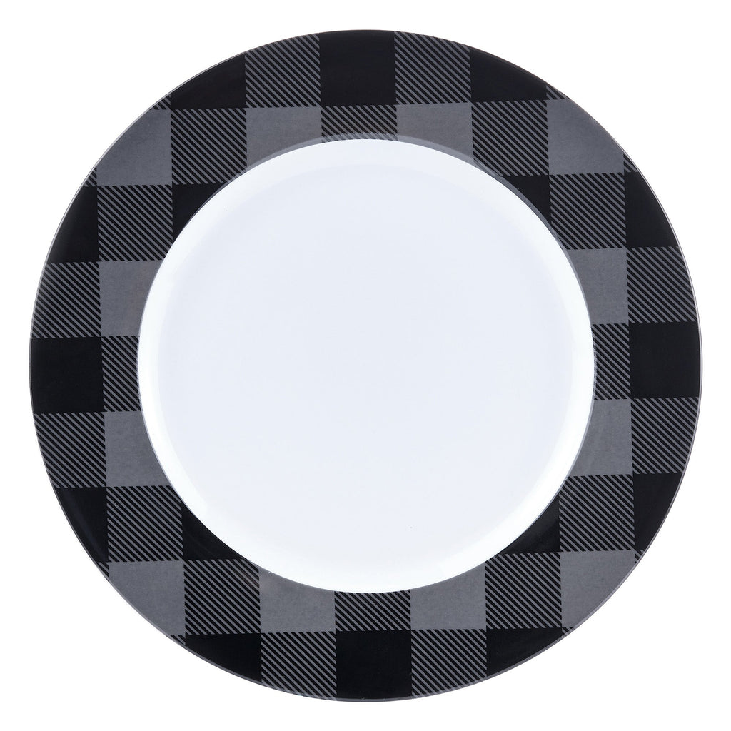 Evoke a sense of modern rustic sophistication with the Buffalo Plaid Grey/Black 16-piece dinnerware set. Each piece is artfully draped in the iconic Buffalo Plaid pattern, merging muted greys with intense blacks for a contemporary and chic ambiance that is both versatile and timeless. Designed for a service of four, this collection seamlessly blends rustic comfort with sleek urban aesthetics to enhance every dining moment.