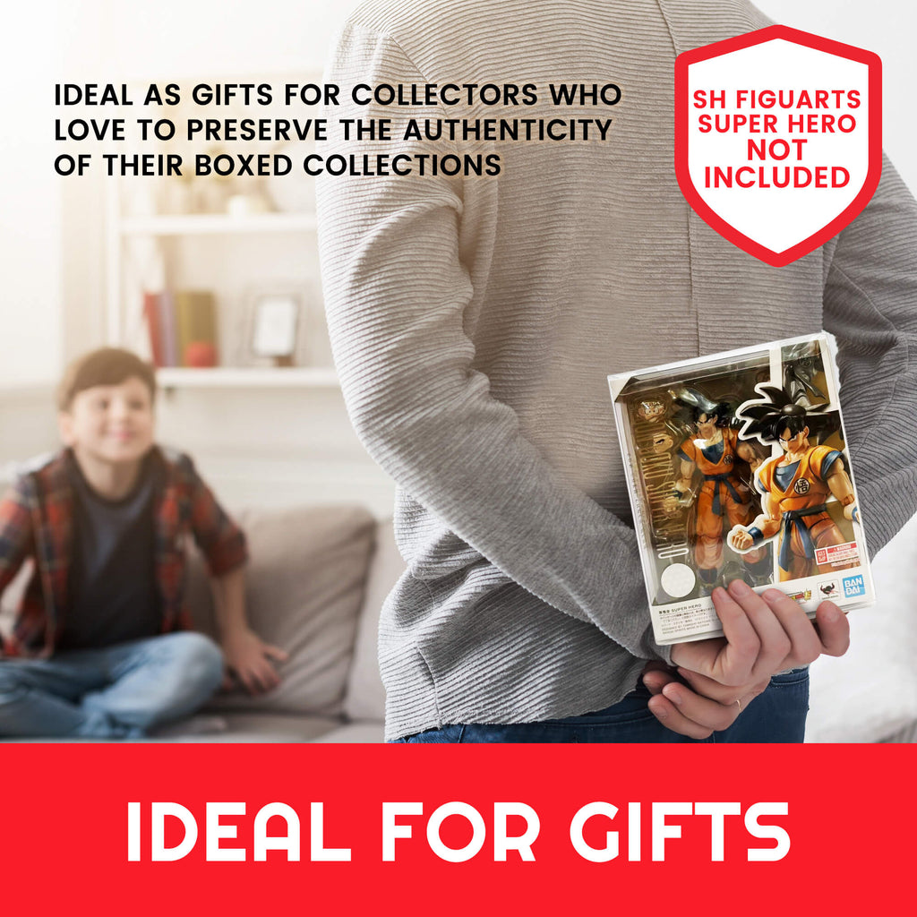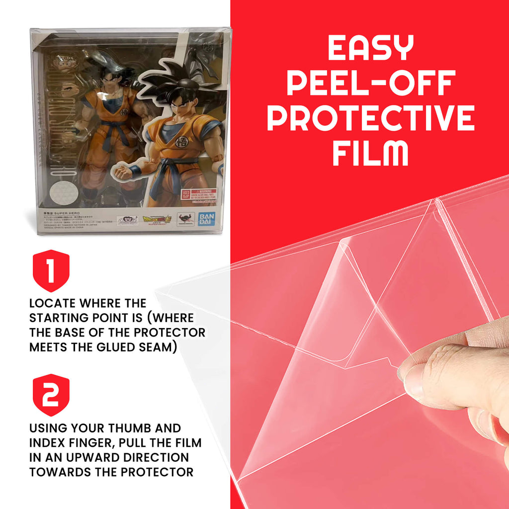 Keep your SH Figure Son Goku Super Hero 6-inch action figures in mint condition with this Pack of 10 PET protectors. Made from crystal-clear, acid-free 0.40mm PET, these protectors shield your figures from dust, scratches, and damage while providing a perfect fit for display. Flat-packed and easy to assemble, they are ideal for collectors who want to showcase and preserve their prized Son Goku figures.