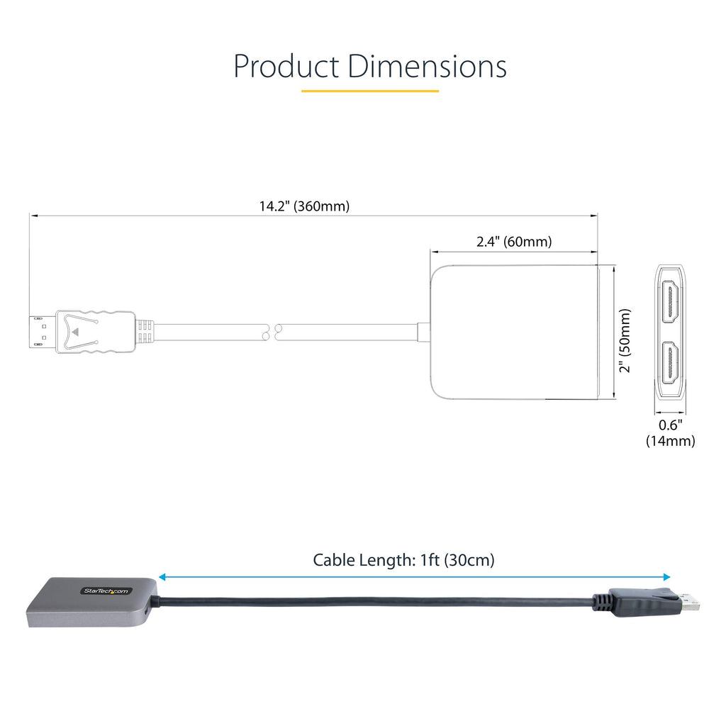 Dual HDMI 4K 60Hz Output – Extend or mirror two 4K UHD displays from one DP 1.4 port