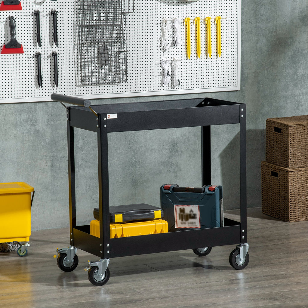 The 2-Tier Rolling Steel Utility Cart is a sturdy, mobile, and versatile solution for tool storage and transport. Designed for garages, workshops, repair shops, and warehouses, this cart features two spacious shelves, smooth-rolling wheels, and a durable steel frame, making it ideal for mechanics, DIYers, and professionals.