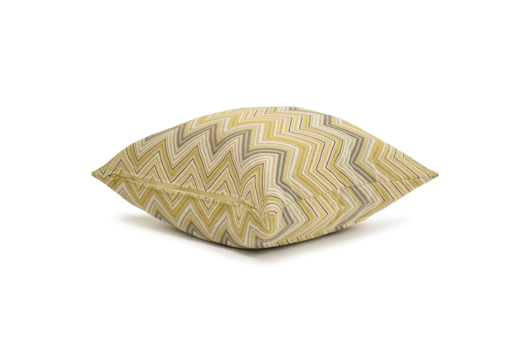 Add a stylish touch to your sofa, armchair, or bed with the Earl Grey Cushion Cover. Featuring a modern yellow and grey zig zag pattern, this cover blends comfort with visual interest. Handmade in Canada, it’s a limited-run piece that pairs beautifully with your favorite cushion.