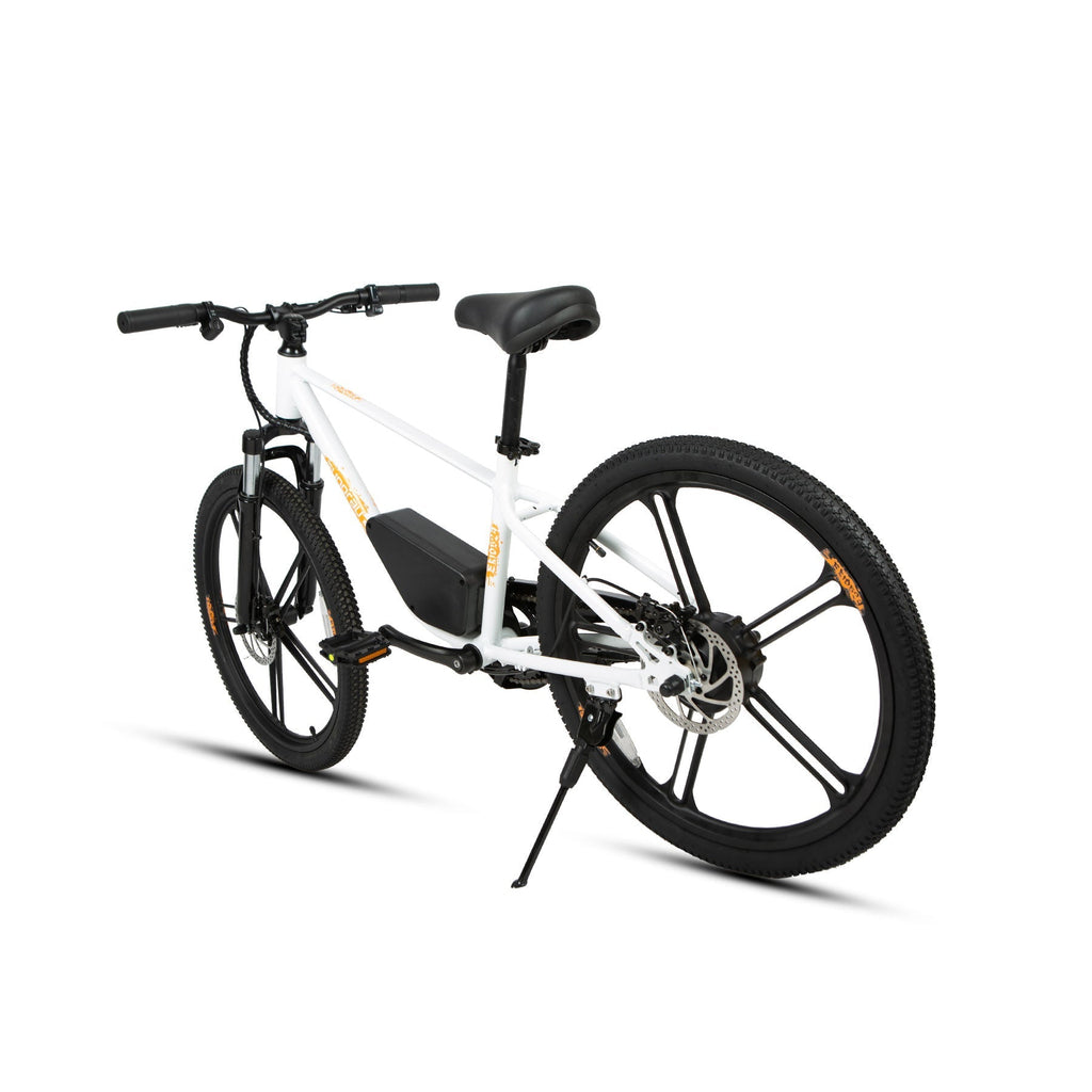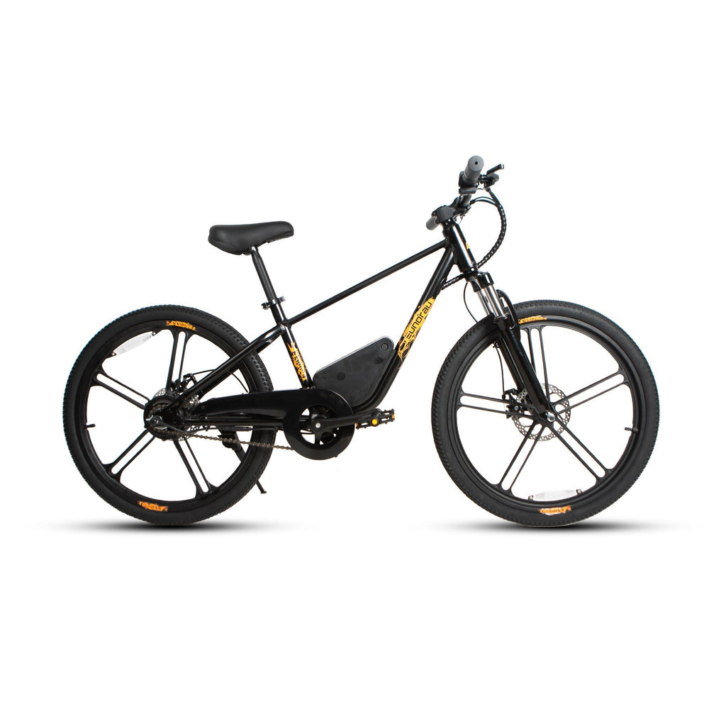 Built with a durable aluminum alloy 6061 frame and 50mm travel suspension fork, the EKIDS-24 absorbs bumps and ensures stability. Safety features include disc brakes with motor cutoff, a cadence sensor, and 160mm disc brake rotors. Lightweight and easy to handle, this e-bike is ideal for kids and teens exploring streets, parks, or bike paths.
