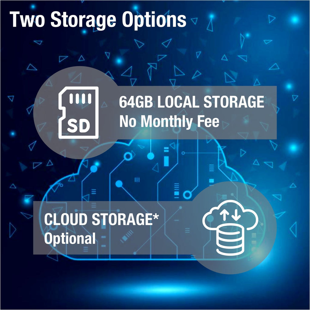 - Built-in 64GB storage for local video storage with no subscription fees.