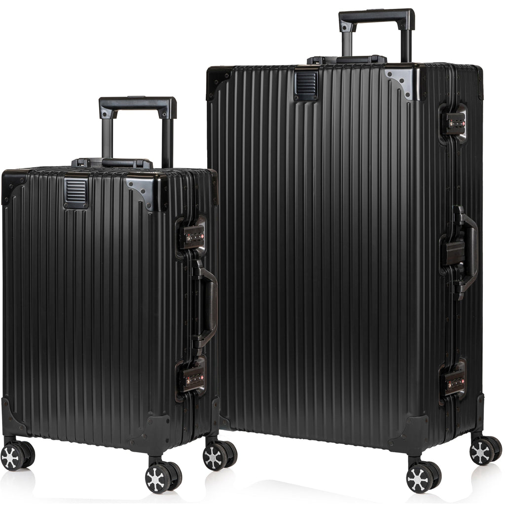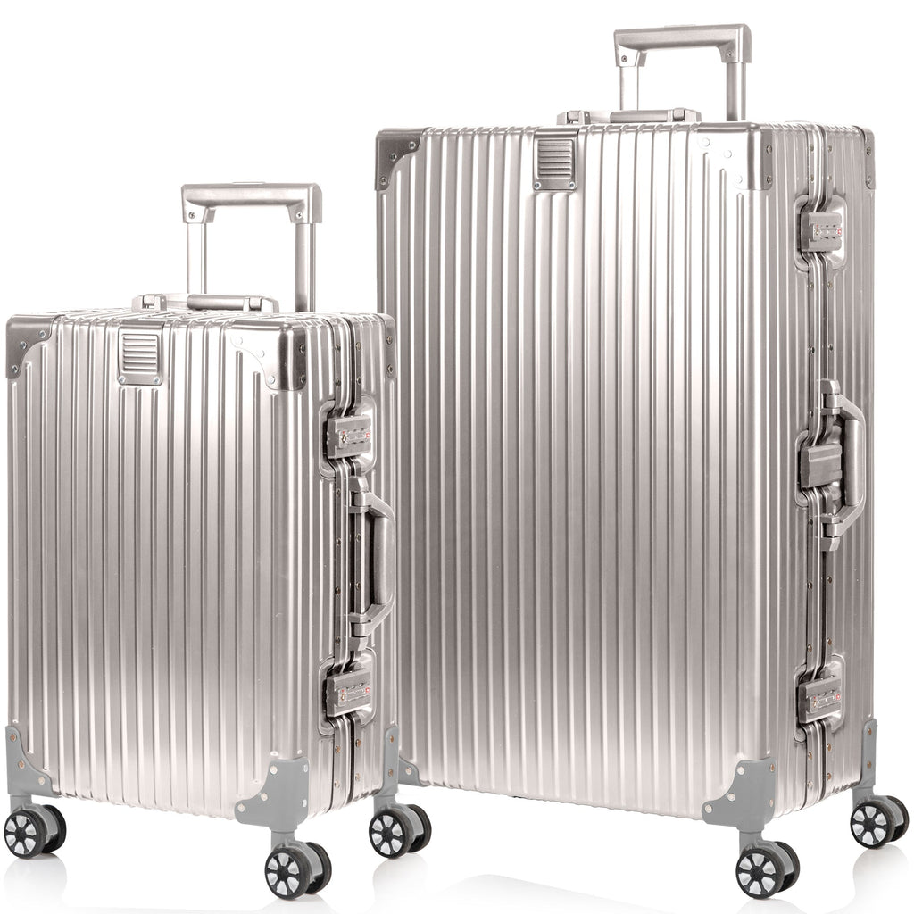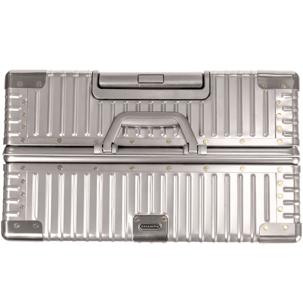 The Elite Collection Aluminum 2-Piece Set from Champs includes a Carry-on and Large Check-in bag, designed for travelers seeking durability, security, and style. Crafted from premium aluminum with dual TSA-approved combination locks, 360-degree spinner wheels, and organized interior compartments, this set offers effortless and elegant travel.