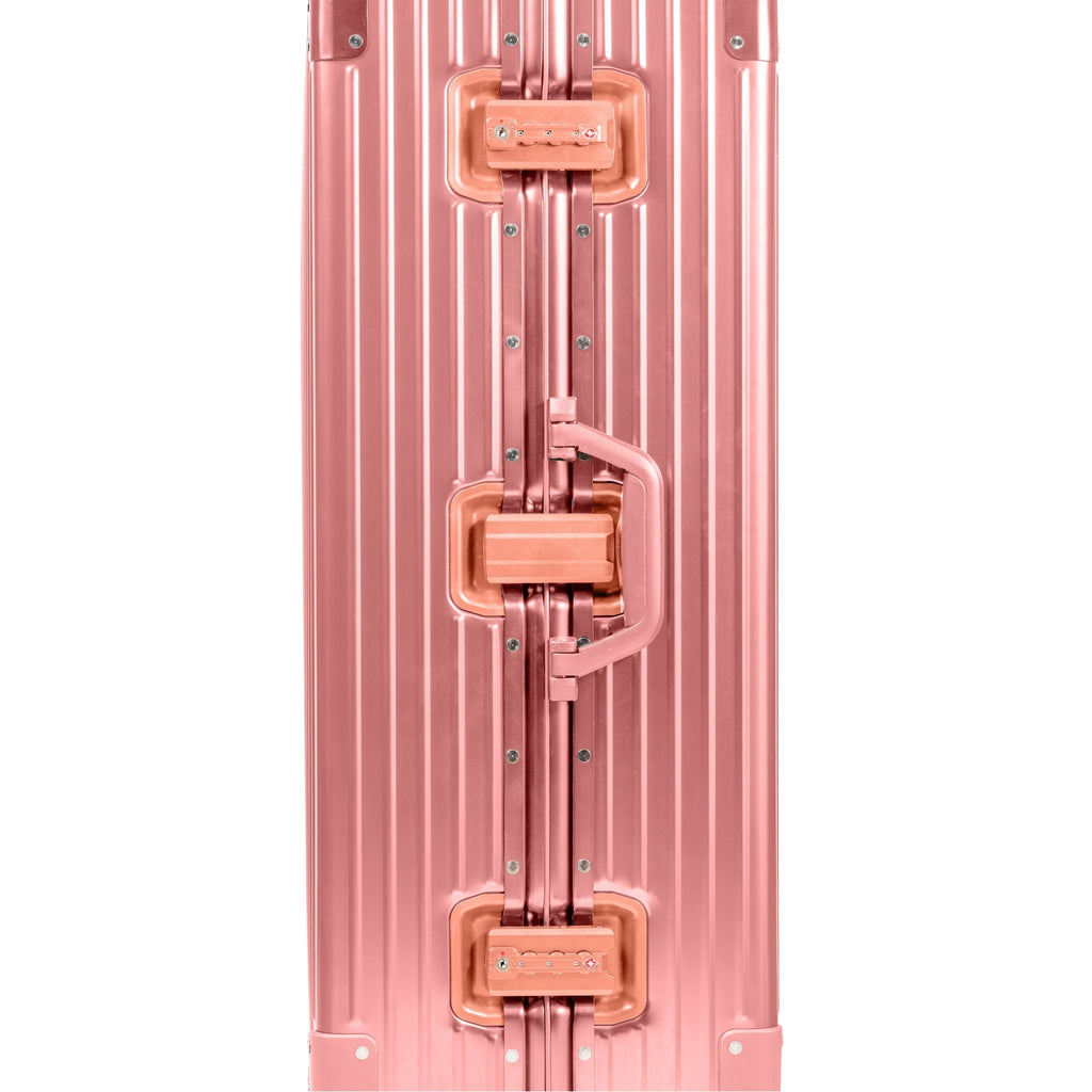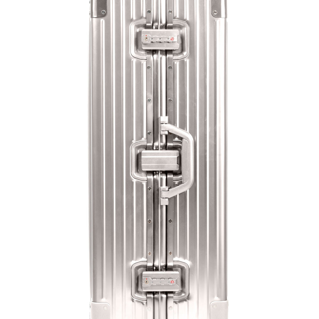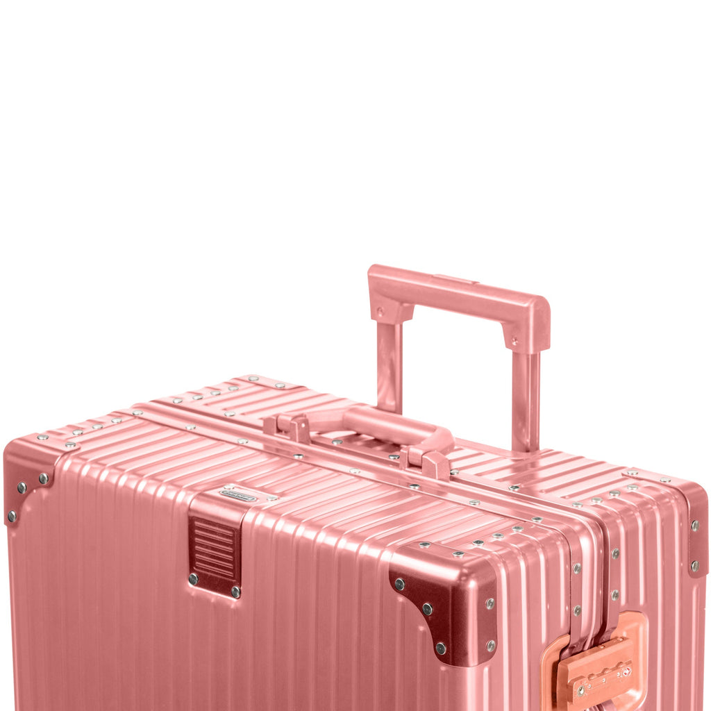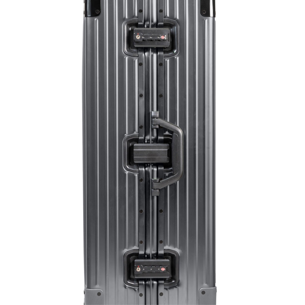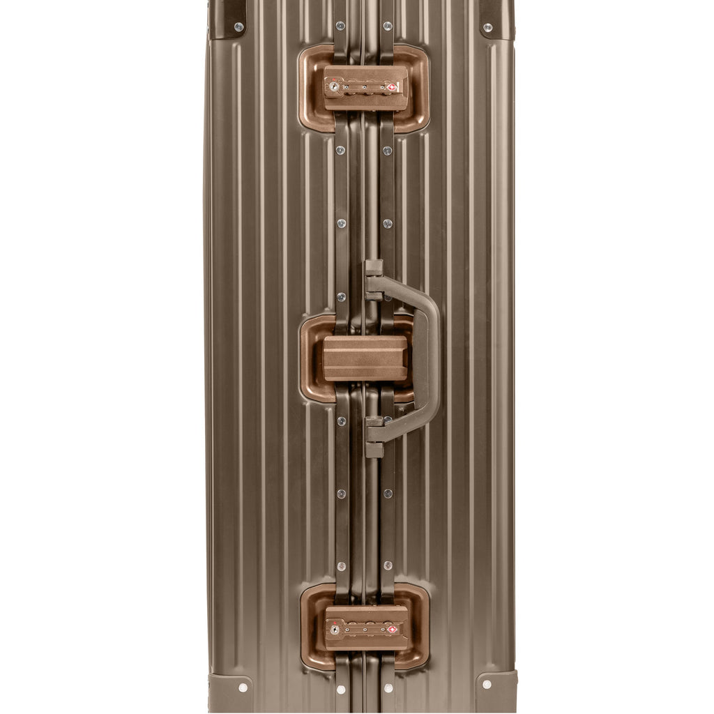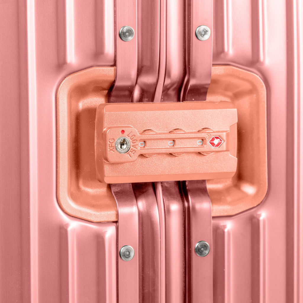 The Elite Collection Aluminum Large Check-in from Champs combines durability, sophistication, and security. Crafted from premium aluminum, it features dual TSA-approved combination locks, 360-degree spinner wheels, a telescopic handle, and interior organizational compartments—perfect for extended vacations or business trips.