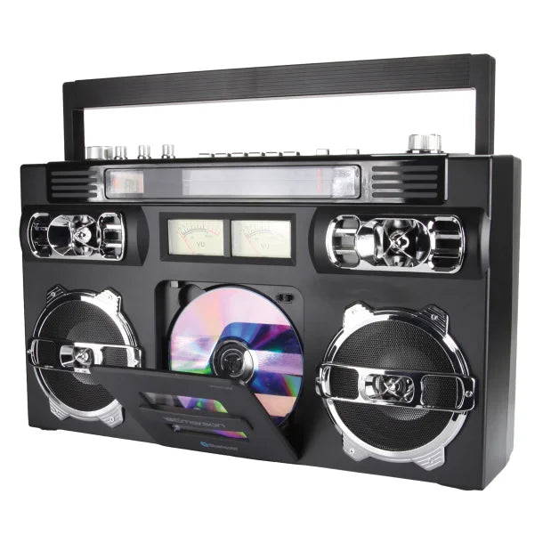 The Emerson® Bluetooth® CD/Radio Retro Boom Box EPB-3004 in black merges nostalgic retro design with contemporary Bluetooth® technology. Play your favorite CDs, tune into AM/FM radio, or stream music wirelessly via Bluetooth® for seamless audio enjoyment. The compact yet stylish design makes it an ideal choice for any room or on-the-go listening. Its built-in Bluetooth® functionality lets you easily connect your smartphone or tablet, making it a versatile option for modern music lovers. Enjoy the best of both worlds with this blend of vintage design and modern functionality.