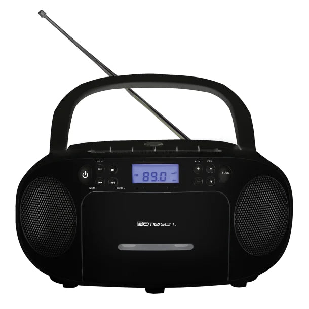 The Emerson® CD/Cassette/Radio Boom Box EPB-3003 in black brings classic audio versatility and sleek design to your space. With the ability to play CDs, cassettes, and AM/FM radio, this all-in-one player offers a wide variety of listening options to suit all music lovers. Its portable design and easy-to-use interface make it perfect for home, parties, or on-the-go entertainment. The powerful sound and nostalgic cassette player offer the perfect retro audio experience, while the compact build allows easy storage and portability. With the Emerson® EPB-3003, you can enjoy a variety of audio sources wherever you are.