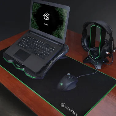 Keep your laptop cool during long gaming or work sessions with the ENHANCE Cryogen™ 5 Laptop Cooling Pad. Designed to prevent overheating and improve overall laptop performance, this cooling pad features five high-powered fans for optimal airflow. The sleek green design not only looks great but provides enhanced cooling efficiency to reduce CPU temperature and prolong your laptop’s lifespan. With adjustable fan speeds and an ergonomic design, it offers comfort and style while ensuring your laptop runs at its best.