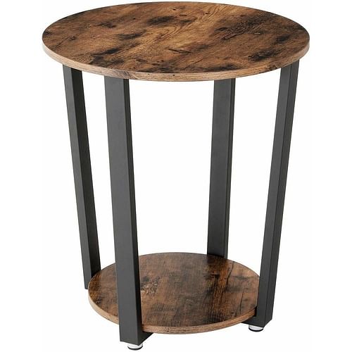 Infuse your home with a touch of rustic charm using the Farmhouse Rustic Round Sofa Side Table. Featuring a sturdy matte black iron frame and a vintage-inspired design, this versatile piece serves as a stylish accent for your living room, bedroom, or office.