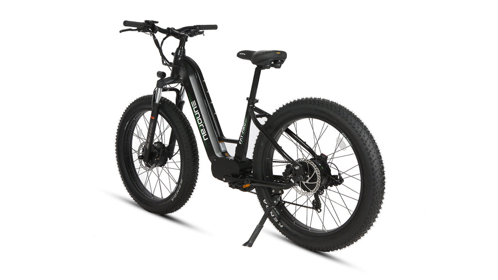 The BC182 LCD display with EUNORAU GO app lets riders monitor speed, battery, and ride modes, while hydraulic disc brakes and a cadence sensor ensure safety and precision. KENDA Krusade Sport 26" × 4.0" fat tires provide stability across all terrains. With an aluminum alloy frame and ergonomic components, the FAT-AWD 2.0 is built for performance and comfort.