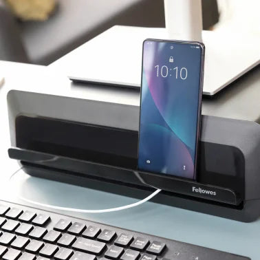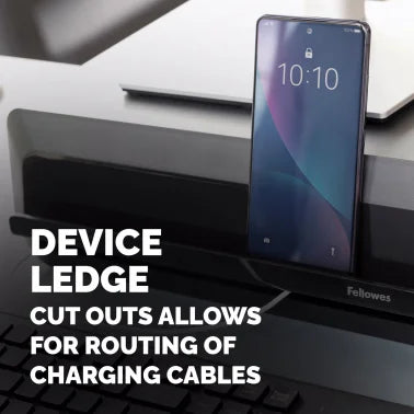 The Fellowes® Breyta™ Ergonomic Monitor Riser (Black) provides an easy and effective solution for improving posture and workspace comfort. Designed to elevate your monitor to a healthier viewing height, this ergonomic stand helps reduce neck and eye strain caused by prolonged screen time. Featuring an adjustable height design, the Breyta™ riser can be customized to fit your needs, ensuring optimal ergonomics. With its sleek black finish, it seamlessly integrates into any home or office setup. Enhance your workstation with this durable and stylish monitor riser for better productivity and well-being.