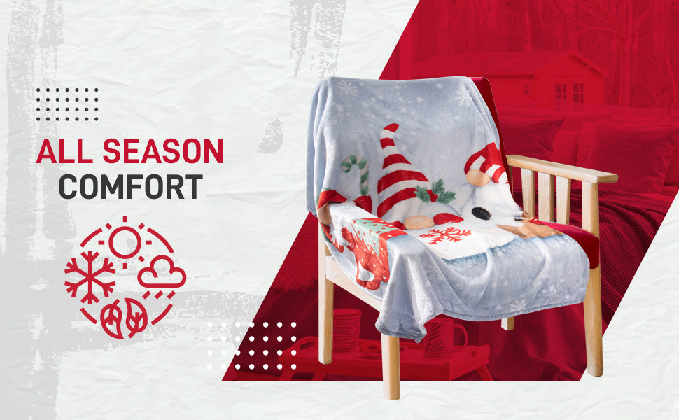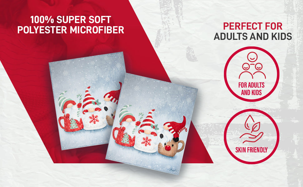 Celebrate the holiday spirit with this Flannel Printed Christmas Throw featuring a playful “Gnomes Party” design. Measuring 48" x 60", it brings warmth, charm, and festive fun into any space. Made from ultra-soft flannel, it’s perfect for snuggling on the sofa, adding holiday cheer to your bedroom, or enhancing seasonal décor throughout the home. A cozy, colorful blanket that spreads comfort and Christmas joy all season long.