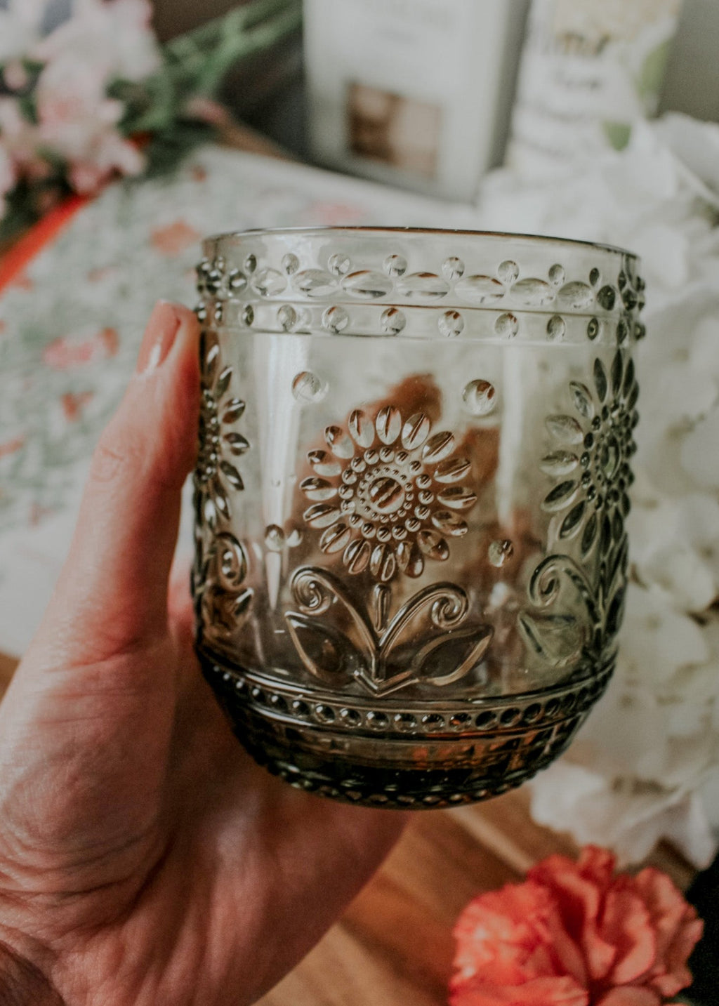 Add a refreshing, nature-inspired touch to your table with the Floral Drinking Glasses, a set of 2 beautifully crafted pressed green glasses. Featuring a delicate floral pattern, these glasses bring elegance and charm to every sip. Perfect for iced tea, lemonade, or cocktails, their 12 oz. capacity and durable design make them ideal for both everyday use and special occasions.