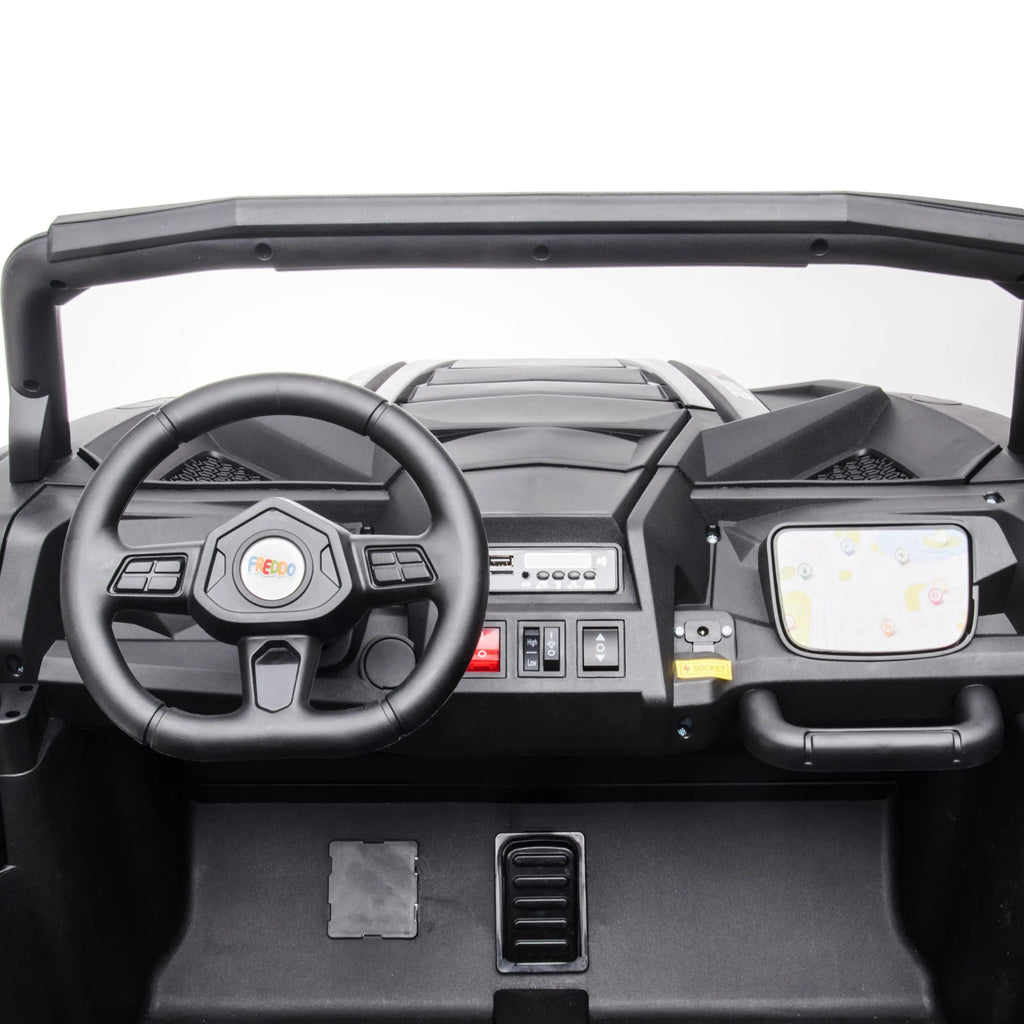 Adventure awaits with the Freddo Buccaneer 24V Ride-On Dune Buggy, perfect for kids aged 3 to 10. Built for off-road fun, this 2-seater ride-on handles sand, grass, gravel, and pavement with ease thanks to its 4x200W motors, EVA tires, and rear suspension. Leather seats and dual seat belts keep young drivers safe and comfortable, while a 2.4G parental remote control provides supervision when needed. Complete with LED lights and a multimedia system (Bluetooth, USB, AUX), the Buccaneer offers endless fun and smooth, safe rides for adventurous kids.