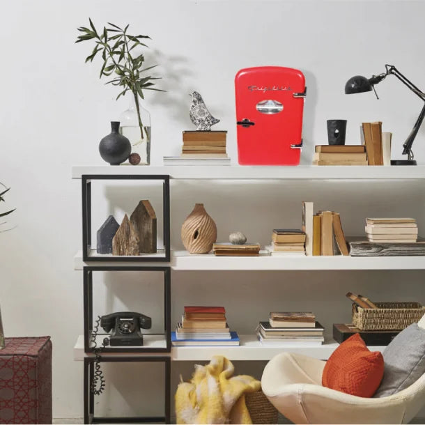 Bring bold style and practicality to any space with the Frigidaire® 0.5-Cubic-Foot Retro Portable Mini Fridge (Red). This compact mini fridge combines vibrant red color with retro flair, making it a perfect addition to dorm rooms, offices, or small apartments. With 0.5 cubic feet of storage space, it holds beverages, snacks, or personal items while maintaining a sleek, nostalgic aesthetic. Designed for portability, it's easy to move from room to room, and its energy-efficient cooling system ensures reliable performance with minimal power usage.