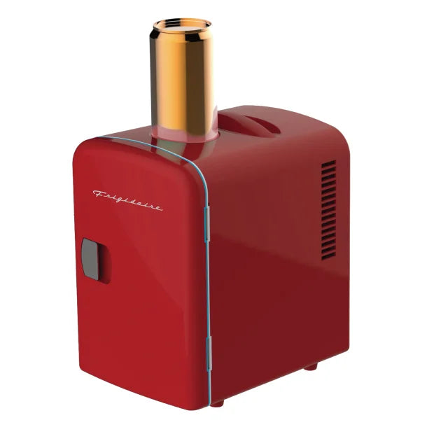 The Frigidaire® 6-Can Mini Fridge with Can Holder on Top (Red) offers a perfect blend of style and practicality. With a 6-can capacity, this compact fridge is ideal for keeping your drinks chilled and easily accessible. The can holder on top adds additional storage for more convenience, making it perfect for dorms, bedrooms, offices, or any small space. The bold red design brings a vibrant pop of color to your room, while its efficient cooling ensures your beverages stay fresh and ready to enjoy. Whether for work or relaxation, this mini fridge is both functional and fashionable.