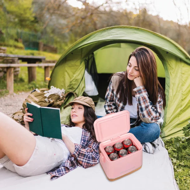The Frigidaire® Top-Opening 6-Can Beverage Insulated Fridge/Cooler (Pink) combines style with functionality, offering a compact solution for keeping your drinks cool and easily accessible. This mini fridge features a top-opening lid and a 6-can capacity, making it perfect for small spaces such as dorms, bedrooms, or offices. The cork-inspired exterior in a vibrant pink hue adds a pop of color to your space, while the insulated design ensures that your beverages stay chilled. Lightweight and portable, this fridge/cooler is perfect for on-the-go use or as a personal beverage cooler in any room.
