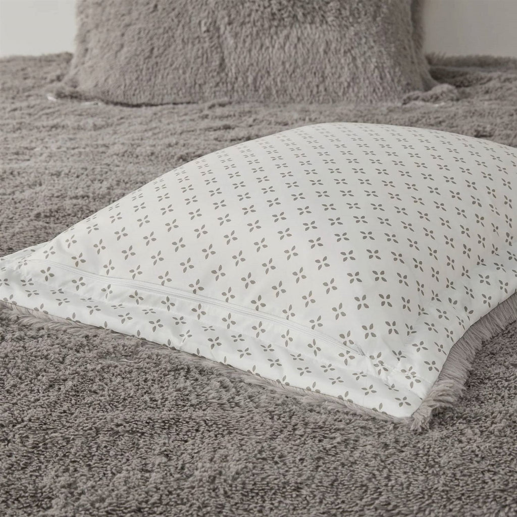 Elevate your bedding with the Full/Queen Size Grey Reversible Soft Sherpa Faux Fur 3-Piece Comforter Set. Designed for ultimate coziness and versatility, this set features a luxurious faux fur side for colder months and a beautiful petals print on the reverse side for warmer seasons. The dual texture fabric ensures you stay comfortable year-round, providing the perfect blend of warmth and softness.