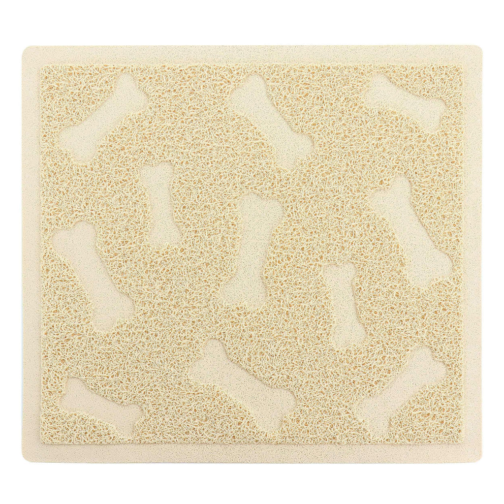 Adorable Design: The placemat showcases a cute dog bone print centered on a tan background, bringing a touch of whimsy to your pet’s eating area.