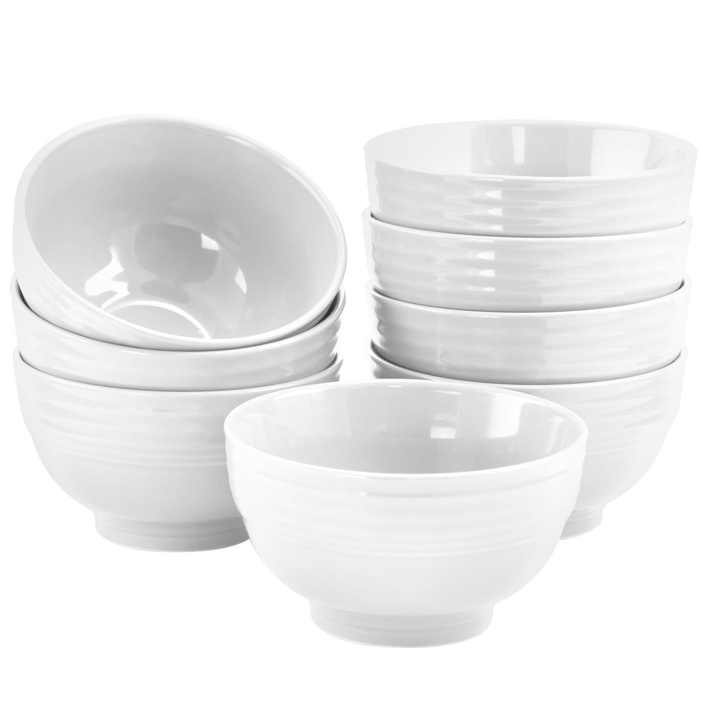 Elevate your dining experience with the Gibson Home Classic Stoneware Bowl Set. With a smooth white gloss finish and elegant embossed design, these bowls add a touch of classic sophistication to any table setting. Perfect for various uses, from cereal and salads to serving dishes, this set combines style with practicality.