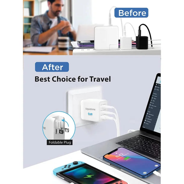 Gigastone® 65-Watt PD 3.0 3-Port GaN Fast Charging USB Adapter