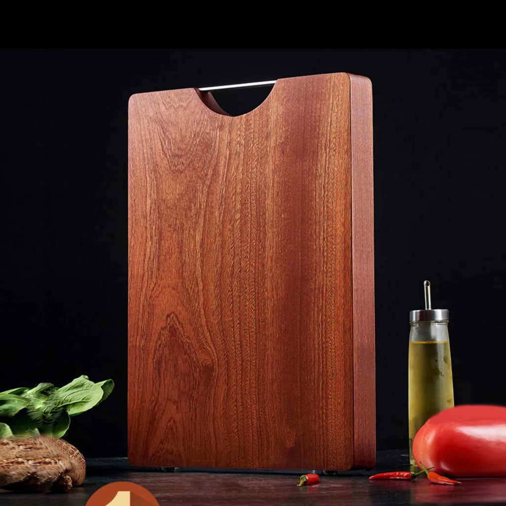 Elevate your kitchen prep with the Ginza Steel Pro Series Ebony Wood Cutting Board. Crafted from a single piece of solid ebony wood, this cutting board offers superior hygiene and long-lasting durability. Its generous dimensions of 50cm x 35cm x 3cm provide ample workspace for all your culinary tasks, while the 304 stainless steel handle adds elegance and convenience. Ideal for professional chefs and home cooking enthusiasts alike, this cutting board combines style, functionality, and sophistication.