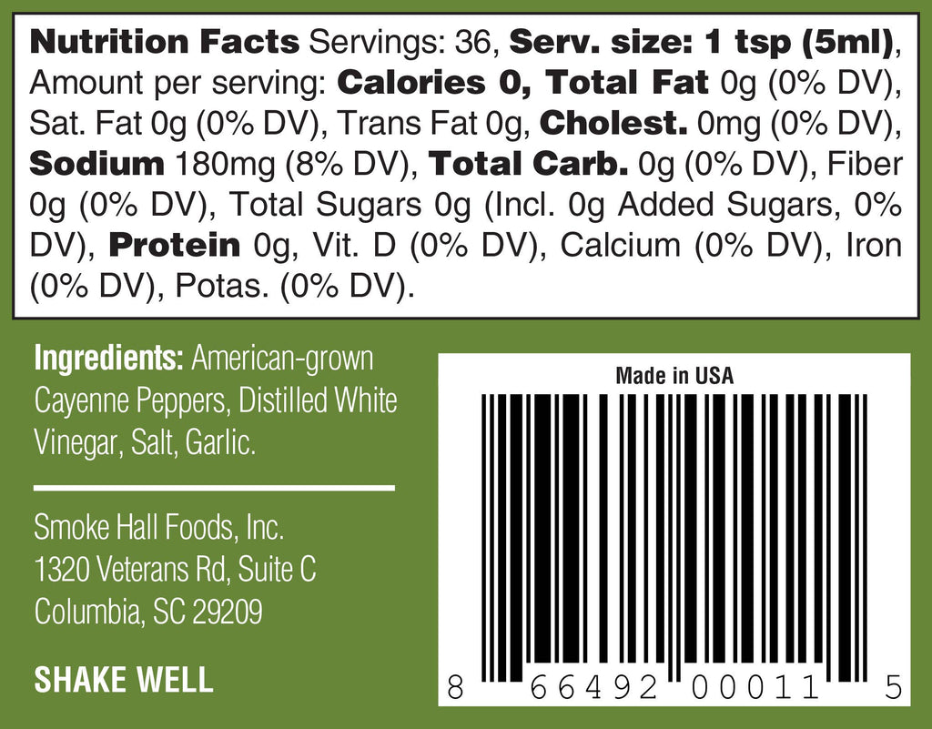 Ingredients: 86% Green Cayenne Peppers, All-Natural Additives