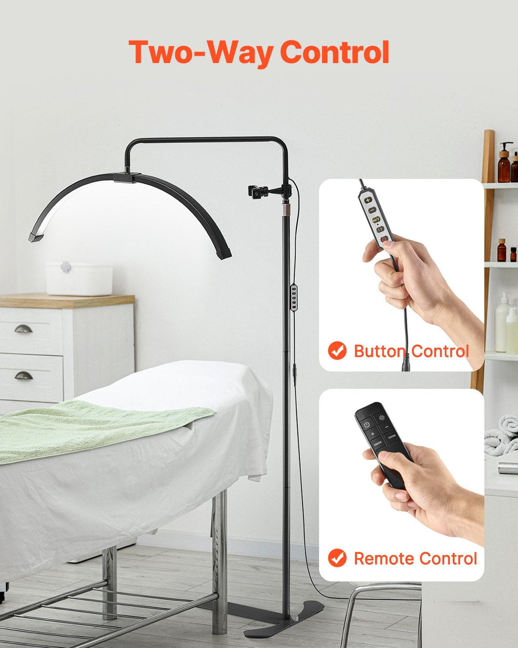 The Half Moon Light for Estheticians is a 26-inch arched dimmable LED floor lamp designed to provide optimal lighting for beauty professionals. With its sleek and modern black finish, this lamp delivers comprehensive illumination for detailed work such as eyelash extensions, facials, tattooing, and more. Its adjustable brightness and color temperature range from 3200K to 5600K, allowing you to customize the lighting to fit your workspace and client needs. Built with a durable aluminum alloy stand, the lamp offers a stable and elegant structure while remaining lightweight and easy to maneuver. The humanized configuration ensures intuitive operation, and the easy installation process means you can be up and running quickly. Perfect for salons, spas, tattoo parlors, or home studios, this LED floor lamp is a must-have for professionals seeking high-performance and versatility in lighting.