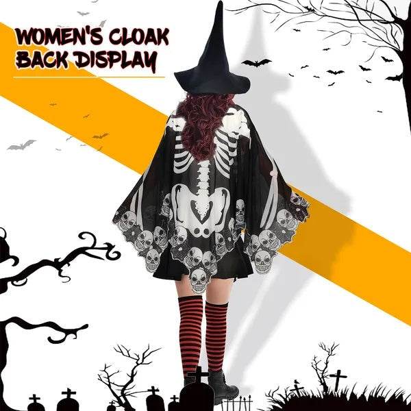 Step up your Halloween costume game with this spooky skeleton poncho. Designed with intricate lace skeleton prints and skull bones, this cape adds a dramatic and eerie flair to your outfit. Made from lightweight polyester, it is comfortable to wear for extended periods and perfect for Halloween parties, Day of the Dead celebrations, birthday parties, or themed events. The black and white design ensures a striking and classic Halloween look, making you the center of attention at any spooky gathering.