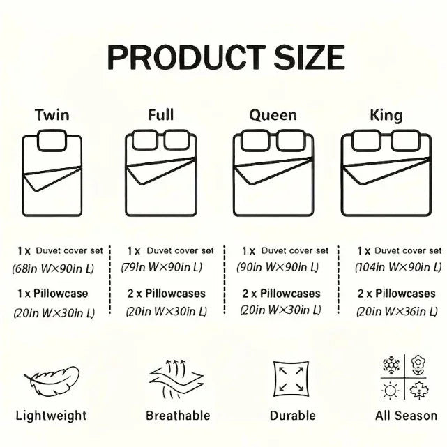 Package Includes: 1 × Duvet Cover + 2 × Pillowcases