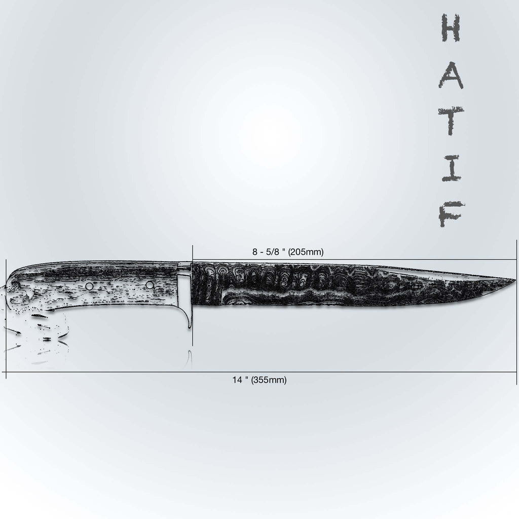 Command the wilderness with the HATIF Bowie Knife, featuring a formidable 8-inch blade and original leather sheath. Designed for hunters, survivalists, campers, and outdoor enthusiasts, this fixed-blade knife combines rugged utility with timeless design, ensuring reliability in any demanding environment.