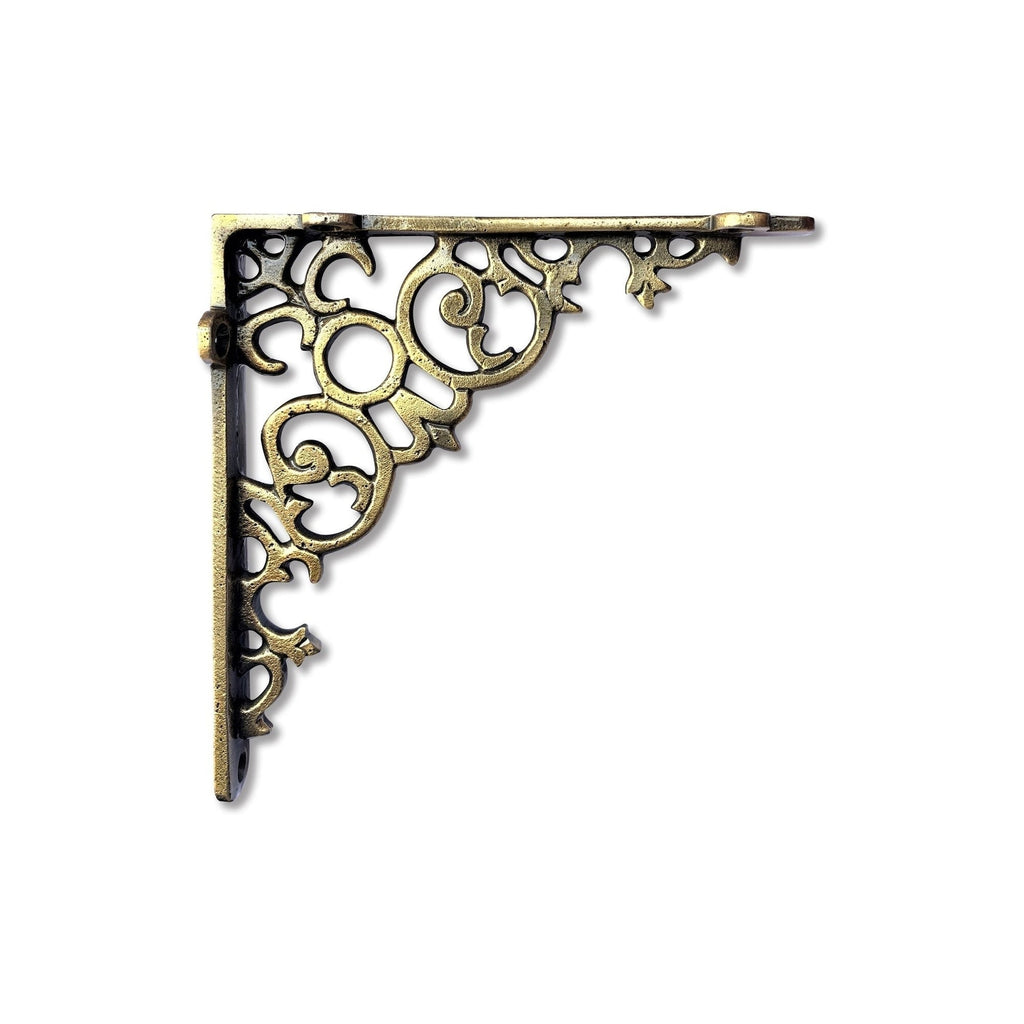 Support your shelves in style with this Heavy Duty Brass Shelf Bracket – Small Scroll. Crafted from durable brass, this elegant bracket provides strong and reliable support for your shelving needs. Its classic scroll design adds a touch of sophistication, while the compact 6x1.2x6 inch size makes it versatile for various shelving applications, ensuring both functionality and aesthetic appeal.