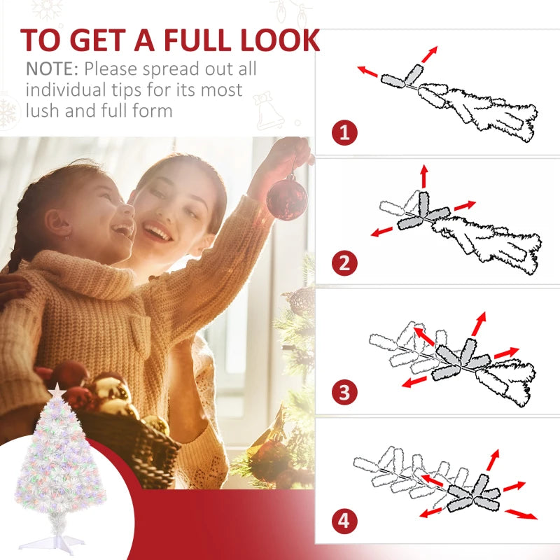 Add festive charm to any small space with the HOMCOM 2.5ft Prelit Artificial Tabletop Christmas Tree. Featuring a crisp white color and built-in fibre optic lights, this compact tree creates a magical holiday glow that’s perfect for decorating tables, desks, shelves, or counters. Its dense, realistic PVC branches provide a full and elegant appearance, while the sturdy base ensures stable placement. Ideal for home, office, or holiday parties, this low-maintenance tree is ready to brighten your holiday season without taking up too much space.